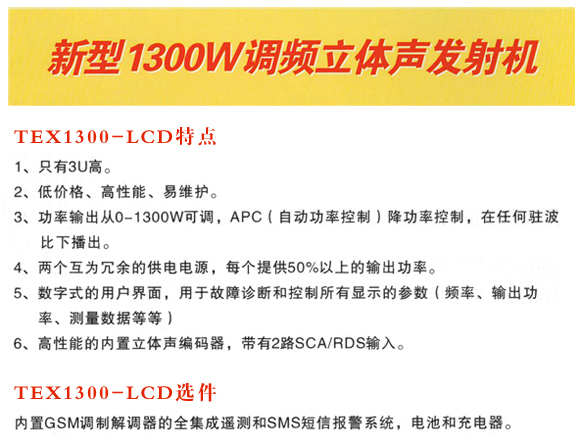 產(chǎn)品簡介:TEX1300LCD一體化調(diào)頻發(fā)射機(jī)