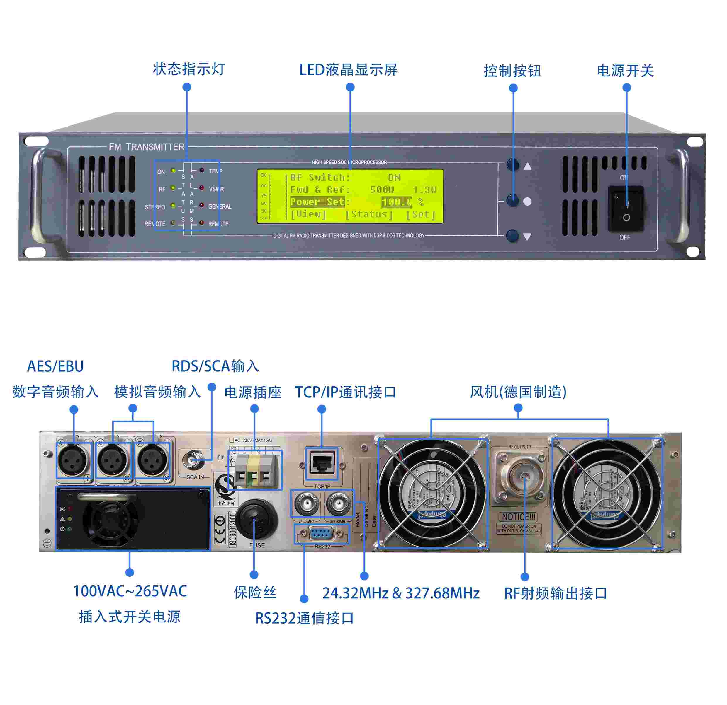 ??? 采用最新DSP+DDS全數(shù)字化技術(shù)的立體聲調(diào)頻激勵(lì)器,整機(jī)的各項(xiàng)技術(shù)指標(biāo)無與倫比,達(dá)到接近CD音質(zhì)聽覺效果。采用大尺寸散熱器和2只德國原裝高速、長壽命風(fēng)扇、確保發(fā)射機(jī)工作在可靠的低溫狀態(tài)。采用臺(tái)灣原裝明緯寬范圍開關(guān)電源。高可靠性、高性能、操作簡便、價(jià)格低廉。